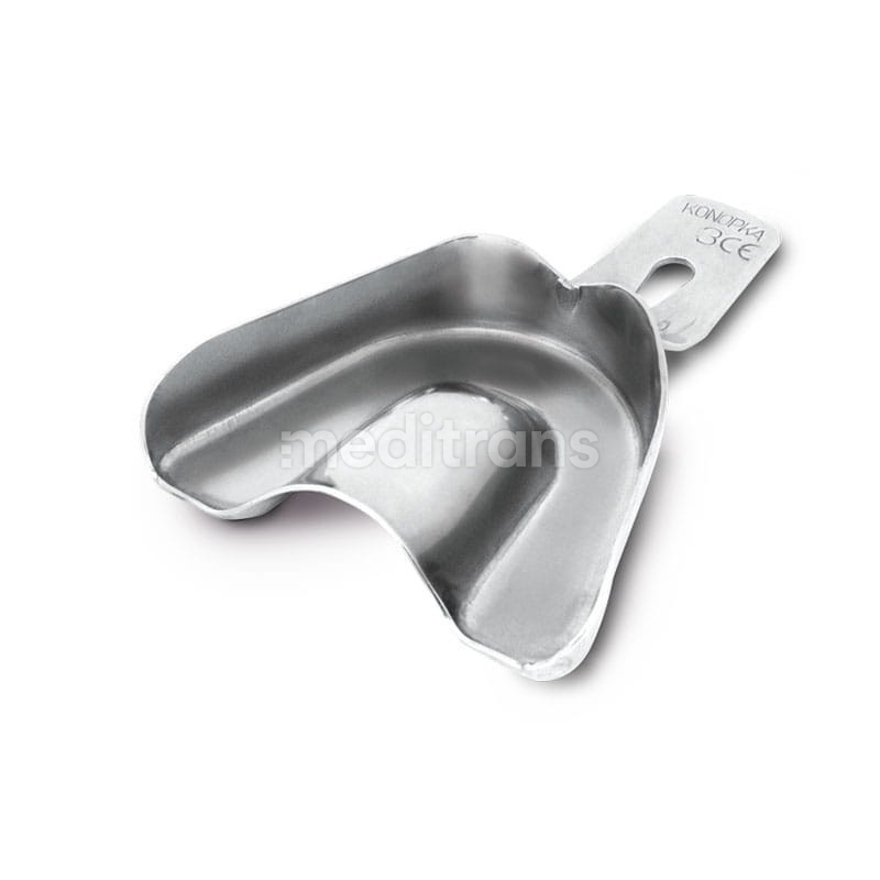 Metalowe łyżki wyciskowe do bezzębia częściowego marki KONOPKA, wykonane ze stali nierdzewnej. Posiadają wysoką odporność na odkształcanie, co zapewnia dokładność wykonywanych wycisków. Łyżki są pełne i nie posiadają rantu.